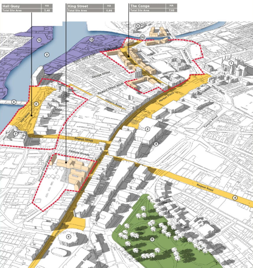 Carter Jonas’ masterplanners were appointed to undertake a comprehensive four-year regeneration plan for the whole town centre. This stretched from the River Yare in the west, to the seafront in the east, and from the station and minster in the north, to the St. George’s Cultural Quarter in the south.